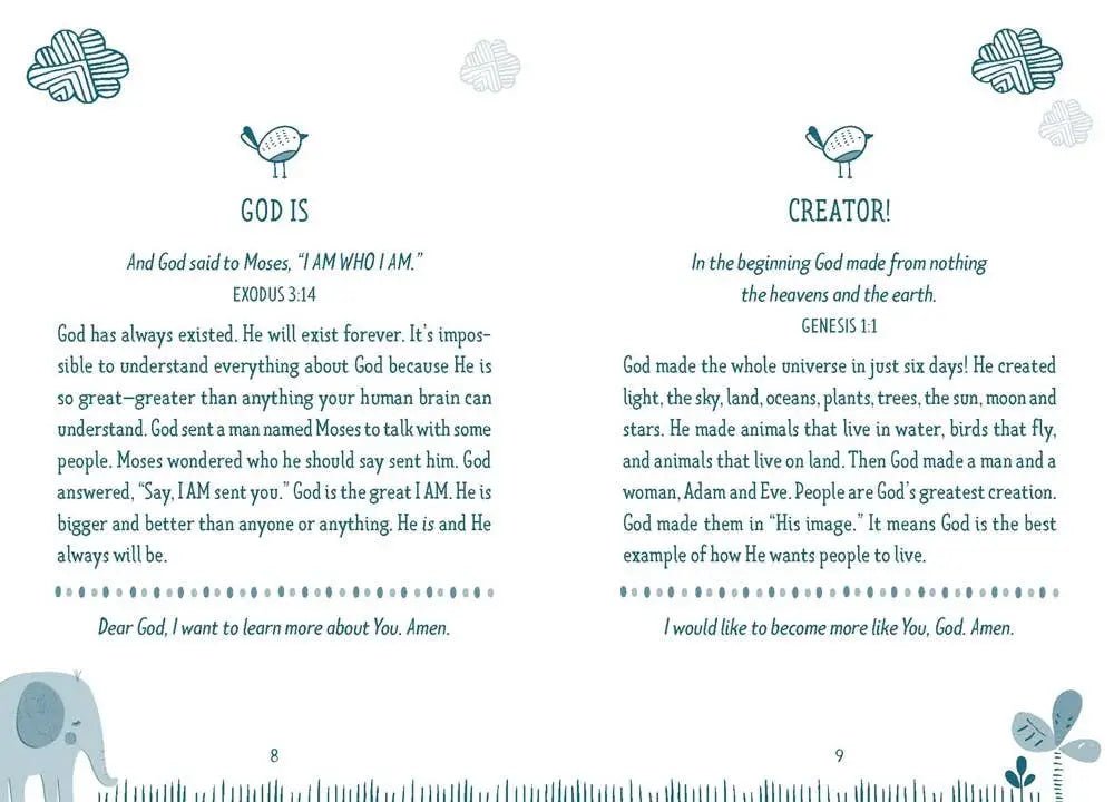 Your boys, ages 5 to 8, will be introduced to dozens of themes from scripture that are as relevant today as they were in Bible times. Featuring scripture selections from the New Life Version plus short prayer starters, every turn of the page promises biblical encouragement and inspiration for a boy's daily life.